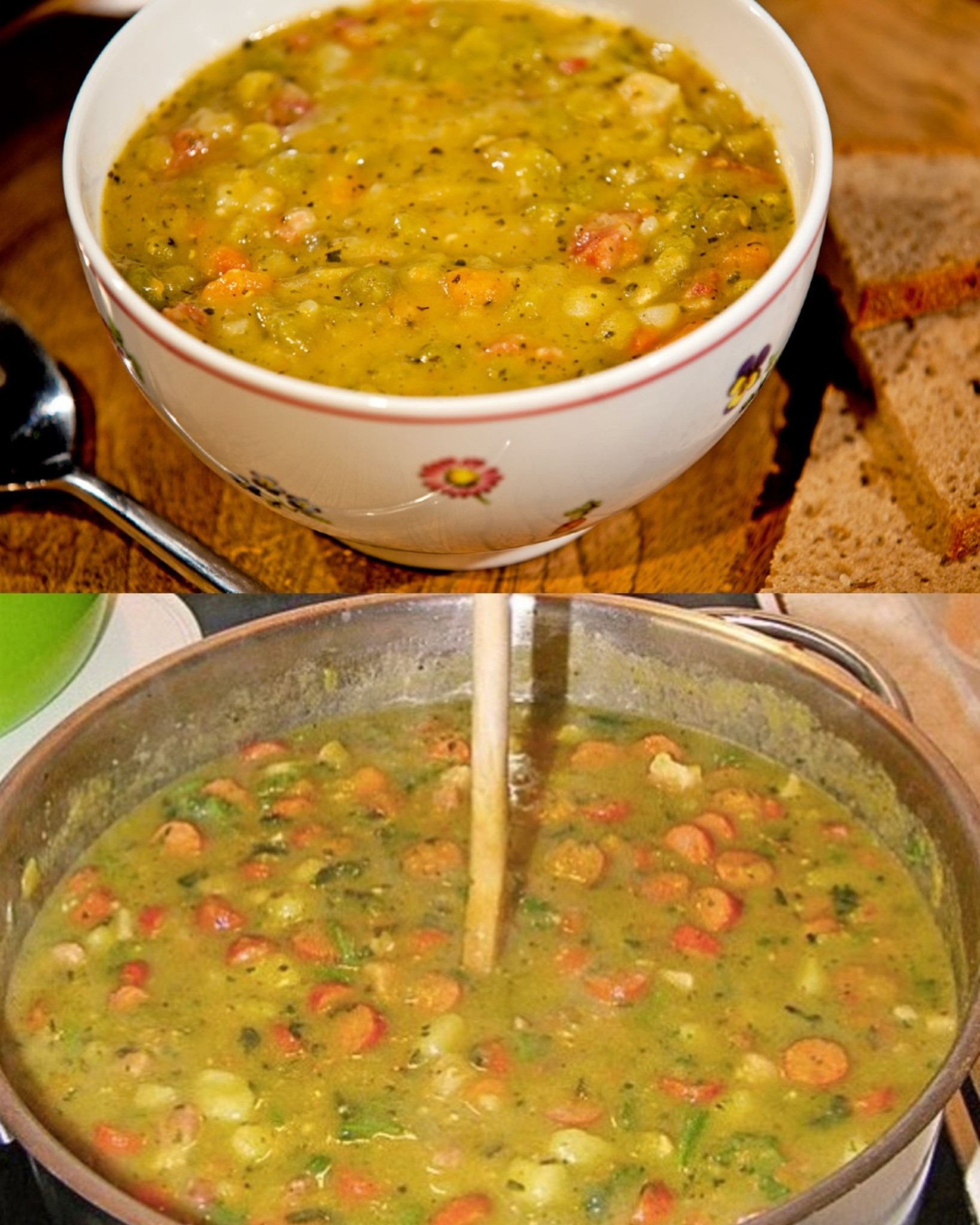 ZUTATEN: 500 g Schälerbsen 100 g Knollensellerie 100 g Karotte(n) 1 Stange/n Porree 2 m.-große Zwiebel(n) 300 g Kartoffeln, mehligkochend 100 g Bauchspeck, geräuchert 20 g Schweineschmalz 1 TL, gehäuft Majoran 2 Stängel Petersilie 2 Liter Wasser 8 TL, gehäuft Gemüsebrühe, gekörnte (leicht gehäufte TL) Salz und Pfeffer, weißer weiterlesen auf der nächsten Seite